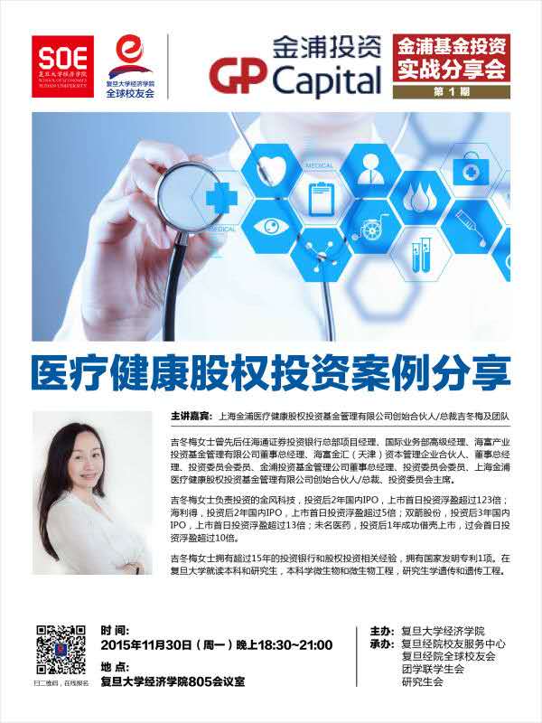 金浦基金投资实战分享会 第一期 医疗健康股权投资案例分享 时间:2015年11月30日(周一)晚上18:30-21:00 地点:日本av片 805会议室 主讲嘉宾:上海金浦医疗...
